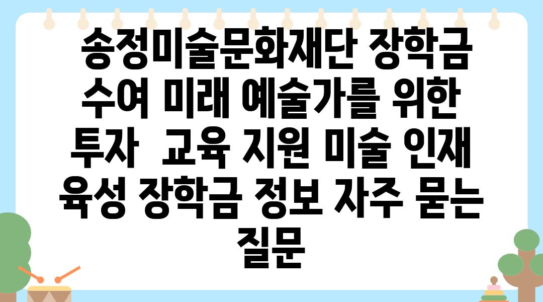 송정미술문화재단 장학금 수여| 미래 예술가를 위한 투자 | 교육 지원, 미술 인재 육성, 장학금 정보 에 대해 자주 묻는 질문 TOP 5